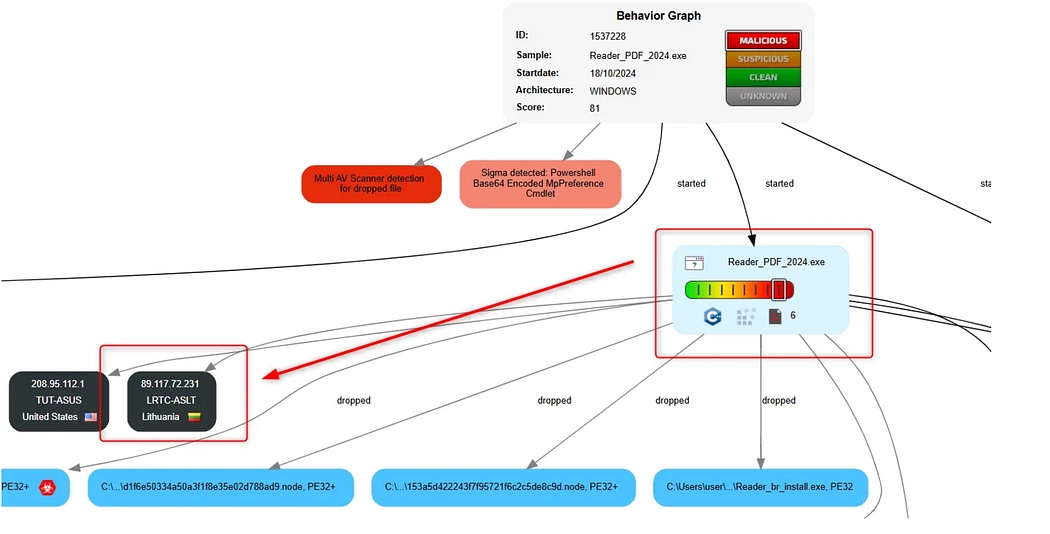 According to an online report from JOESandbox, one of the IPs found (89.117/) is used to distribute the PDF Reader_PDF_2024.exe.