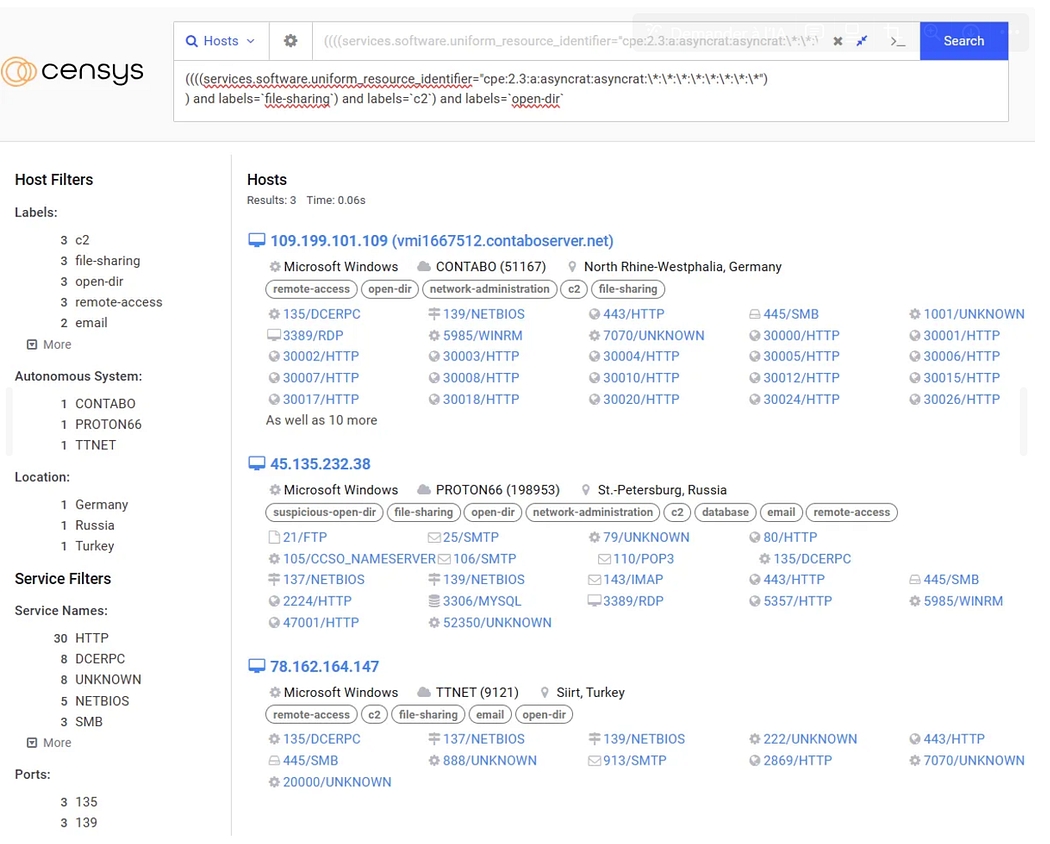 By focusing on this specific threat, several pivoting techniques can lead to a highly reliable Censys query, allowing for the discovery of new malicious C2 servers associated with the AsyncRAT tool.