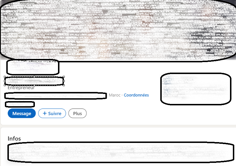 I noted several interesting things there. Firstly, location information (province — city — country). Then, his status as an entrepreneur. Next, I observe in the Info section, a bunch of keywords related to IT, programming, mail server configuration, mail design and coding, automation, e-mailing web campaigns, and self-declared skills in WordPress.