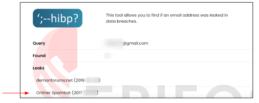 One of his emails (gmail) caught my attention. The Epios tool allows me to learn that this email underwent a data leak in 2017 from the Onliner Spambot website. This could potentially be the address he registered with on the platform to spam his massive phishing actions.