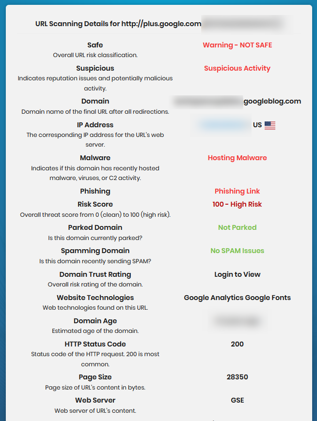 An online analysis of the link quickly tells me that it’s not friendly to those who click on it.